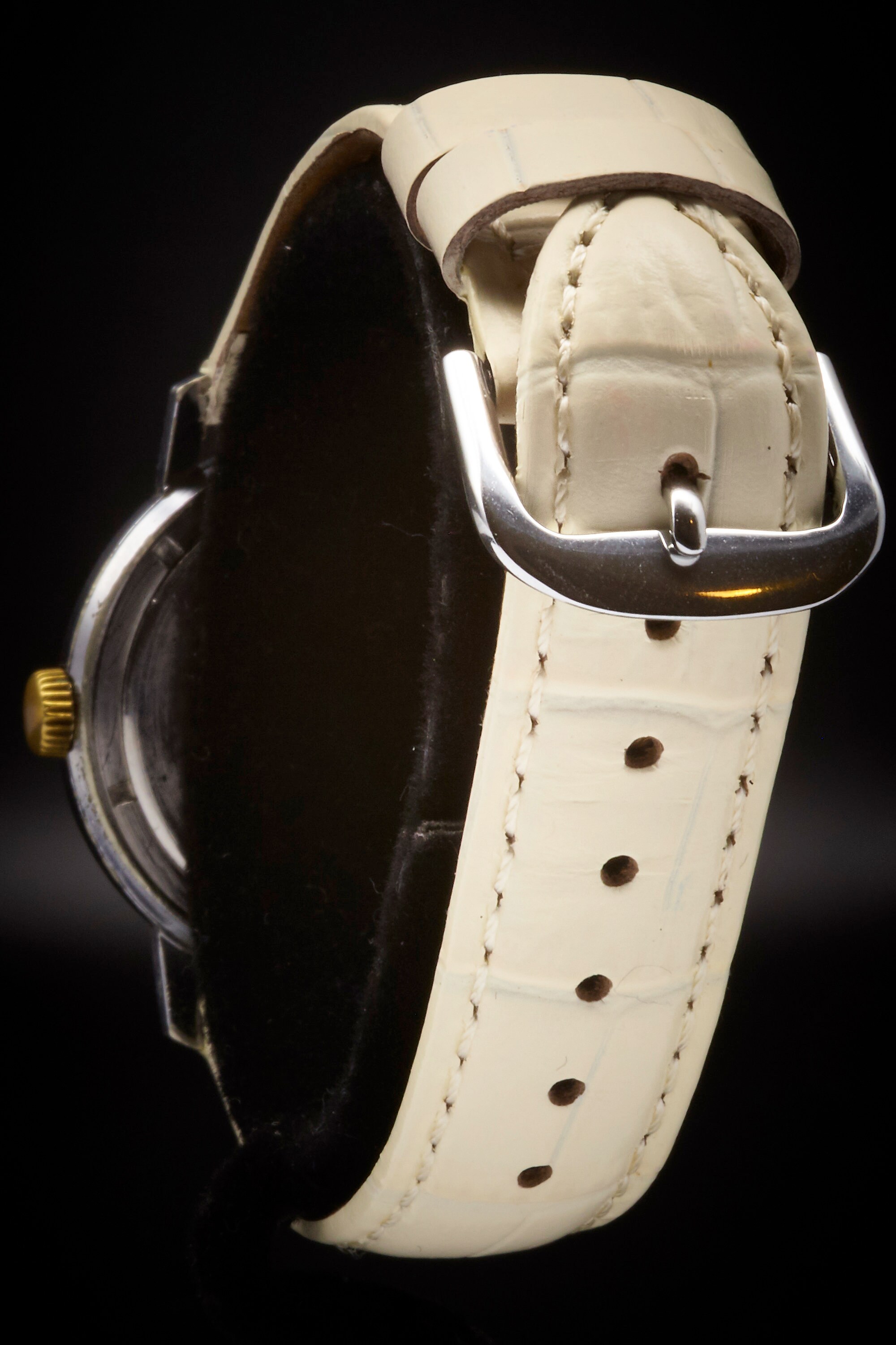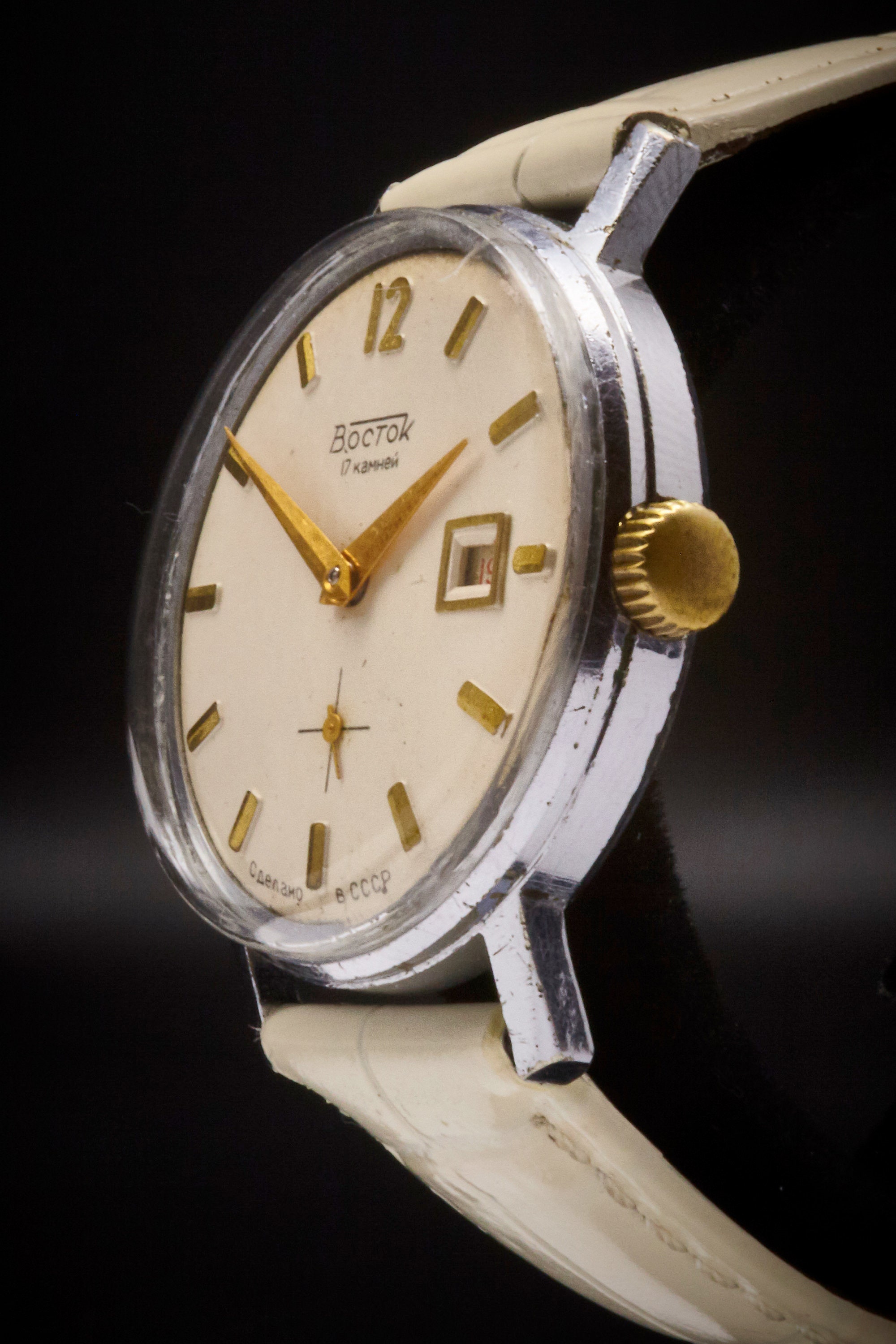 1) Mechanical (hand-winding): These watches use a spring and gears to run. There is no battery. You must wind the watch once daily for it to keep running. Most of my watches are this kind.