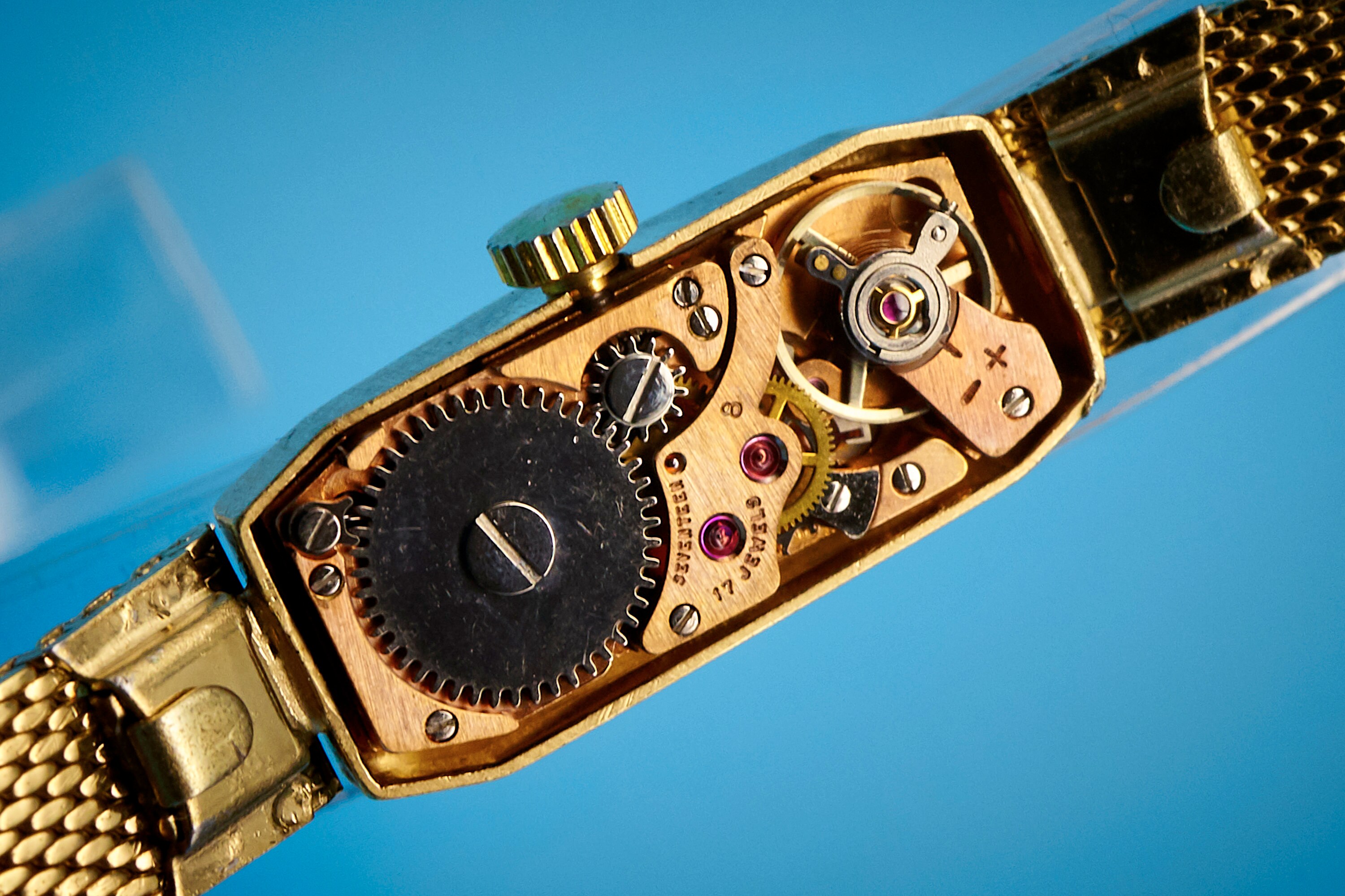 1) Mechanical (hand-winding): These watches use a spring and gears to run. There is no battery. You must wind the watch once daily for it to keep running. Most of my watches are this kind.